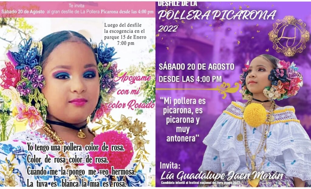 Luego del Desfile de la Pollera Picarona, se escogerá también a la reina infantil del festival mediante un concurso de habilidades. Las candidatas de la categoría infantil son Lesliany Nieto y Lía Jaén.