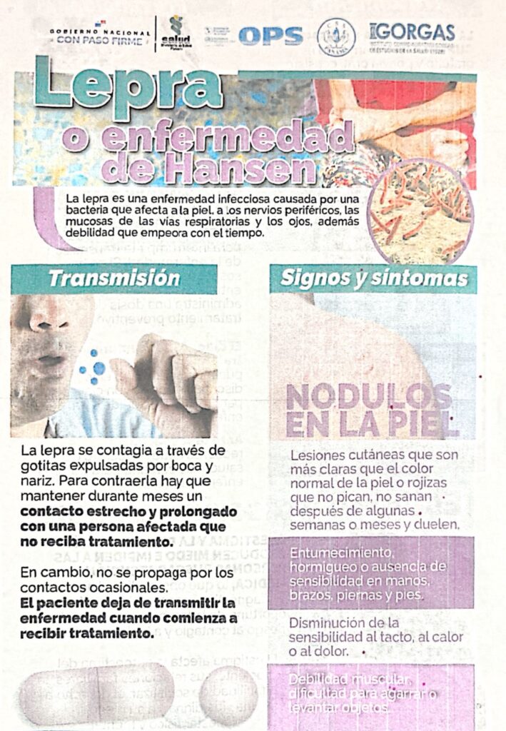 Conmemorando el día contra la lepra, el Ministerio de Salud, junto a sus departamentos se mantiene realizando una jornada de sensibilización en todo el país, y en el caso de la provincia de Coclé, mediante volanteaos, se busca que la población conozca con síntomas y las repercusiones de la enfermedad.