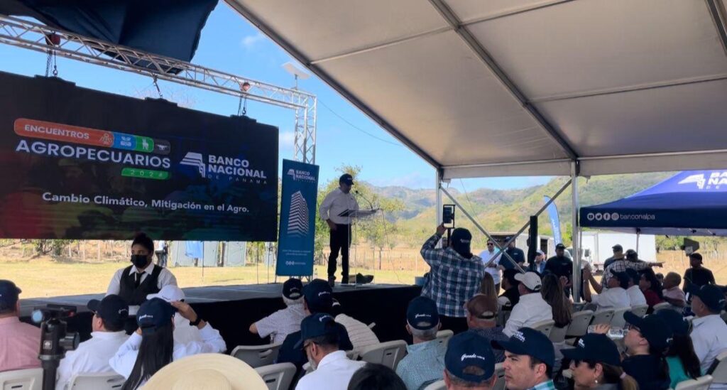 Gran cantidad de productores de todo el país se reunieron en el primer encuentro agropecuario del banco nacional de panamá de este año 2024, realizado en la finca La Daniela de la comunidad de Las Boquillas de La Pintada, en el cual se capacitaron en temáticas del cambio climático y opciones para que este sector se mantenga competitivo y sea ambientalmente sostenible.