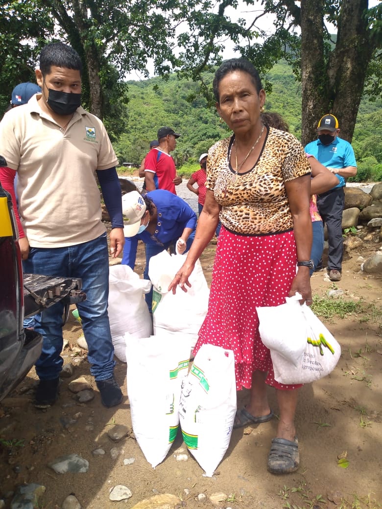 Josefina Barrios, afectada por las inundaciones manifestó que enfrentaron una situación muy difícil, pero tiene esperanza que con estos insumos y semillas puedan recuperar lo que perdieron por la crecida del río y que es parte del sustento de cada una de las familias de la comunidad.