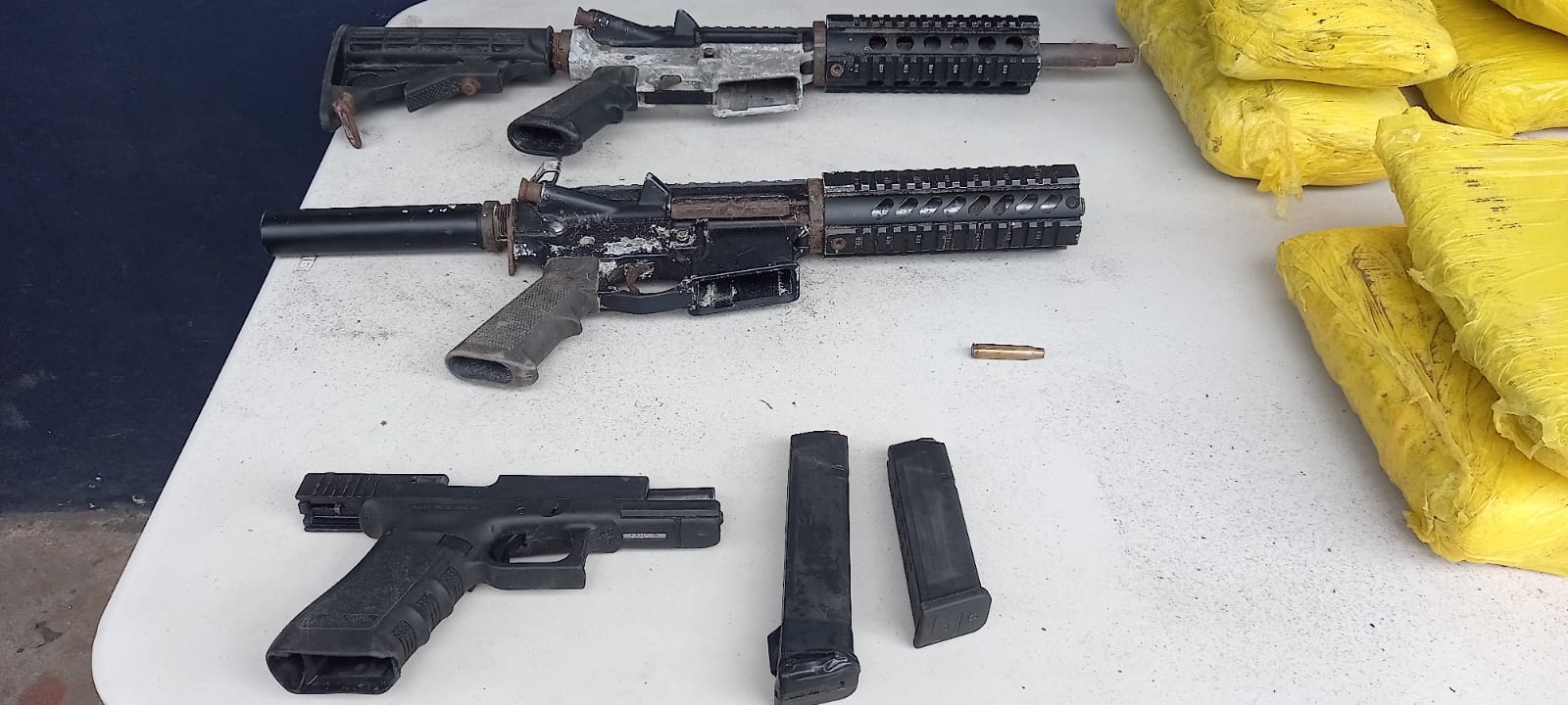Unos 23 paquetes con sustancias ilícitas, 2 fusiles de guerra y 1 pistola tipo Glock calibre 40, fueron encontrados dentro de un tanque enterrado en el área de los manglares de la playa El Salado de Aguadulce.