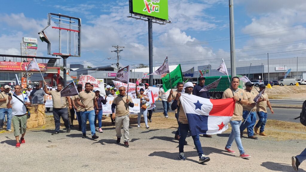 Más de 400 trabajadores marcharon en una caminata pacífica la mañana del 23 de febrero desde la plaza Iguana Mall hasta las oficinas del Ministerio de Trabajo e Industrias en Penonomé como medida de presión para que el gobierno panameño firme un acuerdo con la empresa First Quantum Minerals, concesionaria de Cobre Panamá, que disponga nuevamente las operaciones regulares de la mina.