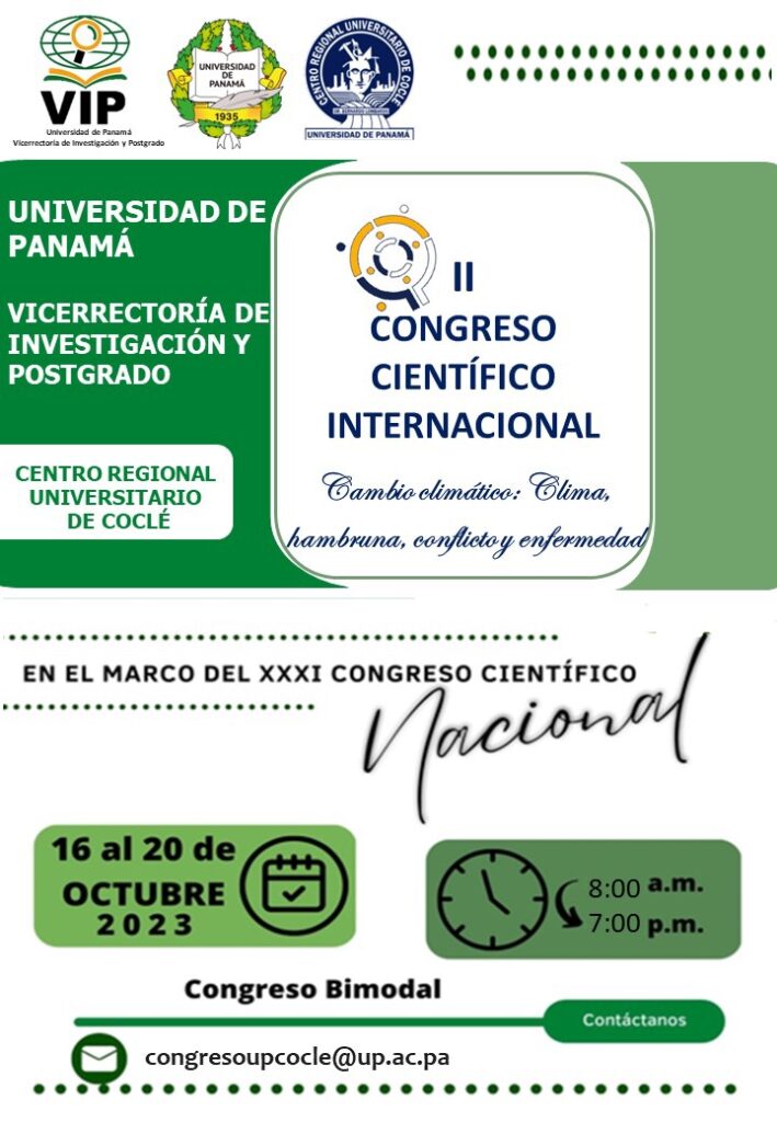 Más de 5 mil estudiantes participarán del Congreso Internacional Científico de la Universidad de Panamá, sede Coclé, que tendrá por tema “el cambio climático” y que se realizará del 16 al 20 de octubre próximo.
